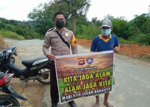 Menjalin – Srikandinews.com. Di saat ini cuaca tidak menentu walaupun di tengah pandemi, Anggota Bhabinkamtibmas Polsek Menjalin Bripka Riyanto selalu dengan penuh semangat ajak warganya di Desa Menjalin menggunakan berbekal banner untuk mengajak bersama sama mencegah karhutla agar tidak membakar sembarangan yang mengakibatkan sakit sesak nafas. Selasa ( 30/3/2021 )