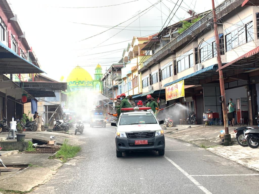 Penyemprotan tersebut dilakaanakan oleh Tim Gabungan Pencegahan dan Penanganan Covid-19.