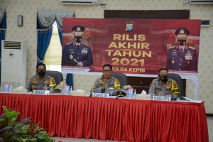 Batam – Srikandinews.com. Polda Kepri Menggelar Rilis akhir Tahun 2021 di Gedung Lancang Kuning Polda Kepulauan Riau, Kamis (30/12).