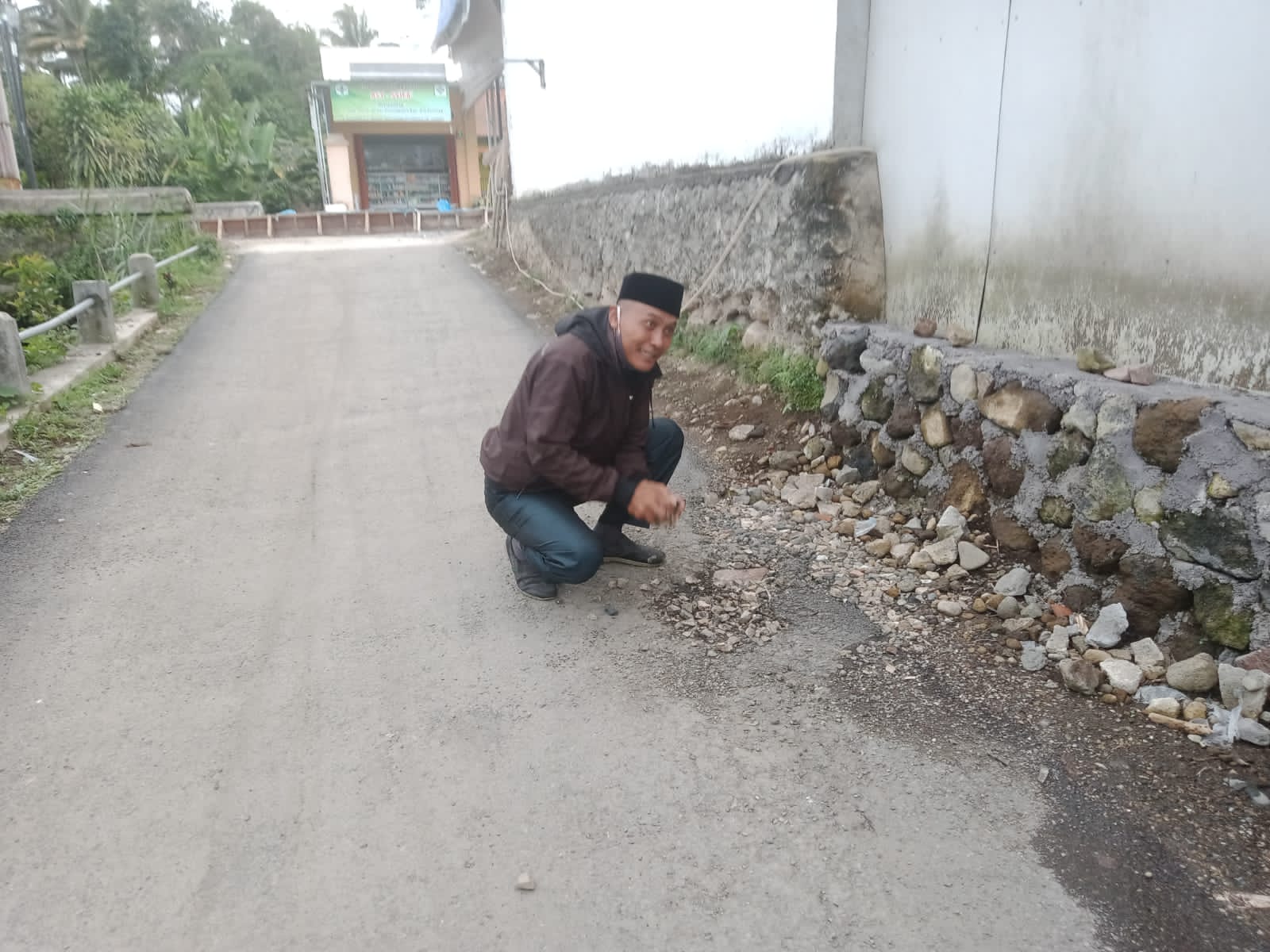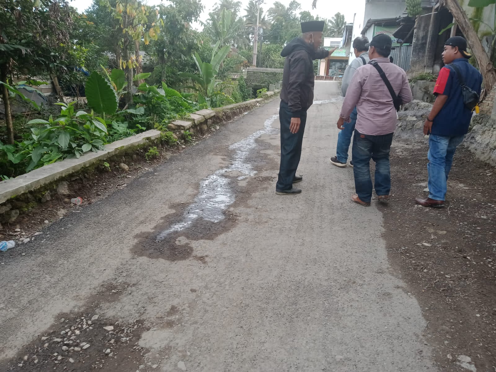 “Pemerintah daerah kita ini sudah memberikan perhatiannya, dengan sudah membangun sebagian jalan-jalan desa kita, tapi melihat kondisinya, hasil pembangunannya, kami perihatin juga. Perihatin, ini baru berapa hari, dengan cuman dialiri air sedikit, kita liat itu semua, jadi ko anu ya, ini kekurangan materialnya, apa kayak mana ini,” ujarnya, yang merasa sangat kecewa akan hasil kerjaan yang baru beberapa hari selesai dibangun namun sudah nampak kerusakannya.