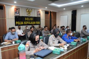 Batam – Srikandinews.com. Kepala Kepolisian Daerah Kepulauan Riau Irjen Pol Dr. Aris Budiman, M.Si., didampingi Waka Polda Kepri, Pejabat Utama Polda Kepri dan Para Kapolres/Ta Jajaran Polda Kepri mengikuti video conference bersama Kapolri membahas kelangkaan bahan pangan khususnya minyak goreng. Bertempat di Ruang Vicon Polda Kepri. Selasa (15/3/22).