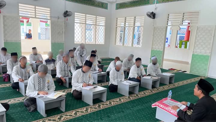 Bintan – Para santri yang merupakan warga binaan di Lapas Kelas IIA Tanjungpinang mengikuti berbagai kegiatan keagamaan melalui Pondok Pesantren Daaruth Taubah Lapas Kelas IIA Tanjungpinang di Mesjid At-Taubah, Selasa (07/01/2025).