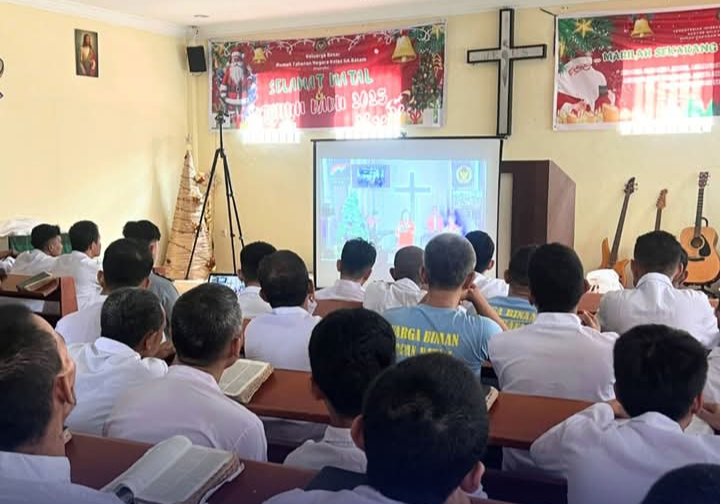 Batam – Warga binaan Rutan Batam ikuti Perayaan Natal Nasional 2024 bagi narapidana Kristiani di seluruh Indonesia yang diselenggarakan oleh Direktorat Jenderal Pemasyarakatan bekerja sama dengan Indonesia Berdoa. Perayaan ini diadakan pada Selasa (7/1), dengan tujuan untuk memberikan kesempatan bagi warga binaan untuk merasakan sukacita Natal meskipun di balik jeruji.