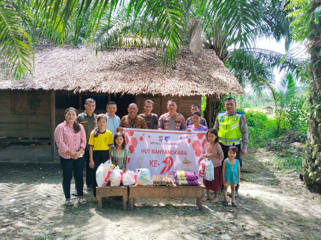 Nias – Srikandinews.Com. Kasat Lantas Polres Nias, AKP Sonahami Lase, S.H., bersama PS, Kanit Kamsel Sat Lantas Polres Nias Bripka Albert Harefa, melaksanakan kegiatan bakti sosial dengan memberikan bantuan kepada keluarga kurang mampu atas nama Sozanolo Telaumbanua alias Ama Rizal (47 tahun) dalam rangka memperingati Hari Ulang Tahun (HUT) Bhayangkara ke-79 dengan tema “Polri Hadir Untuk Masyarakat”, di Desa Soewe, Kecamatan Gido, Kabupaten Nias.