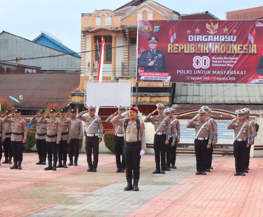 Nias Selatan – Srikandinews.Com. Polres Nias Selatan menggelar Upacara Bendera Memperingati Hari Ulang Tahun ke-80 Kemerdekaan Republik Indonesia, bertempat di halaman Mako Polres Nias Selatan, Minggu (17/8/2025)