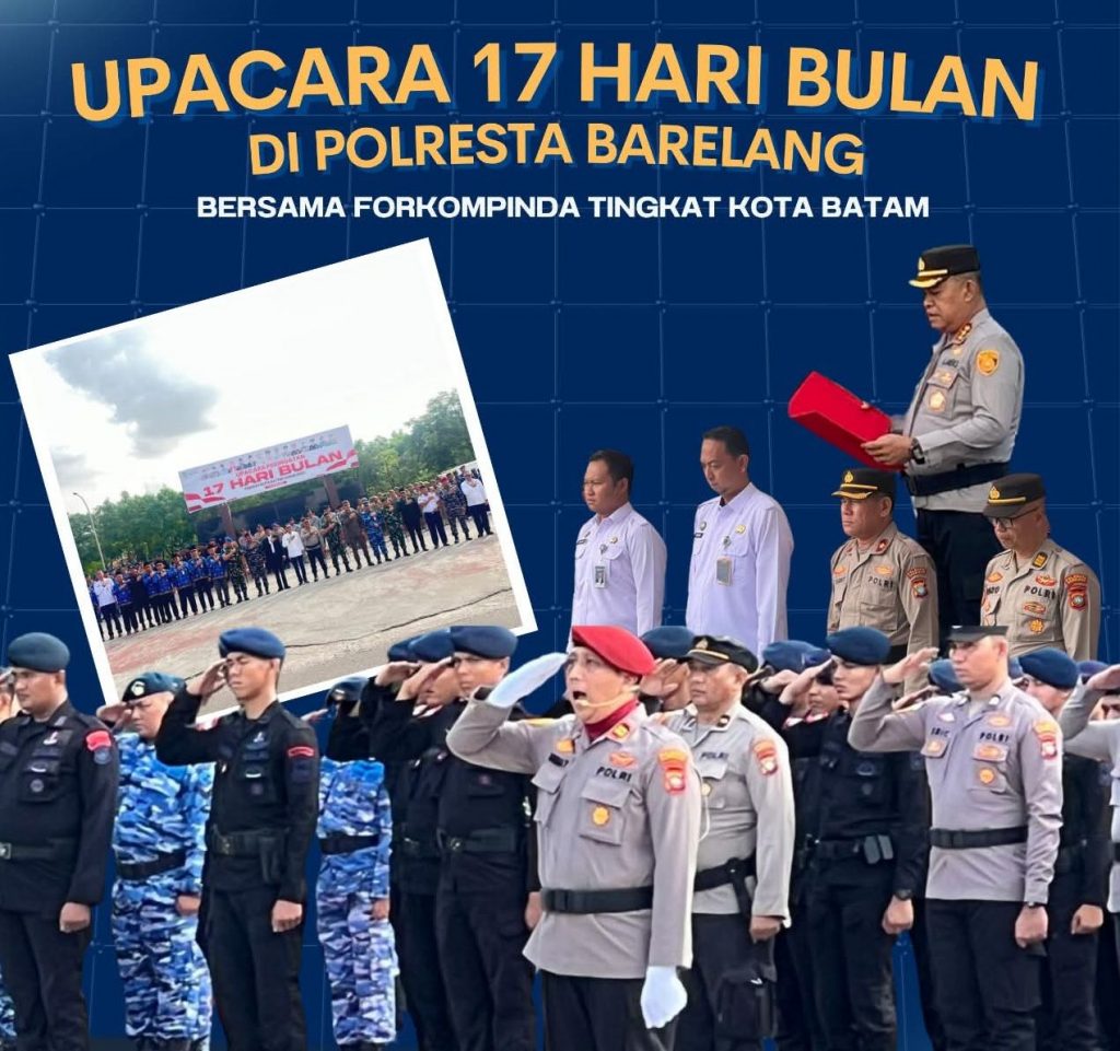 Batam,- Srikandinews.com.Kepala Rumah Tahanan Negara (Rutan) Kelas IIA Batam Fajar Teguh Wibowo menghadiri Upacara Bendera Hari Kesadaran Nasional (17-an) tingkat Kota Batam yang diselenggarakan di Polresta Barelang, Jumat (17/10).Kegiatan yang rutin dilaksanakan setiap tanggal 17 ini diikuti oleh jajaran Forum Koordinasi Pimpinan Daerah (Forkopimda) Kota Batam.
