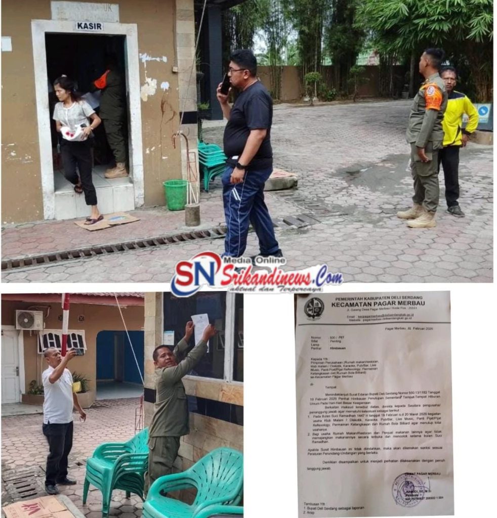 Pemerintah kabupaten Deli Serdang kecamatan Pagar Merbau Junaidi SE,M.Si camat kecamatan Pagar Merbau beserta jajarannya melakukan penertiban memberikan surat himbauan untuk tutup sementara kepada cafe atau tempat hiburan di kecamatan Pagar Merbau, kepada para pengusaha ( Cafe ) yang berada di wilayah pemerintahan kacamata Pagar Merbau Jumat (27-02-2026) hal tersebut agar ummat Islam yang sedang menjalankan ibadah puasa tidak terganggu dan berjalan dengan baik.