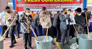 Pekanbaru – Srikandinews.com. Ditresnarkoba Polda Riau memusnahkan barang bukti narkoba berupa 48,68 kg sabu dan 525,84 gram ganja, Kamis (19/5/2022). Barang haram tersebut merupakan hasil pengungkapan dari 7 kasus dengan tersangka 14 orang. Kegiatan pemusnahan dipimpin oleh Wakapolda Riau Brigjen Pol Tabana Bangun didampingi Diresnarkoba Kombes Yos Guntur Yudi Fauris …