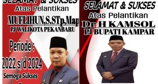 Pekanbaru – Srikandinews.com. Terjawab sudah teka-teki siapa PJ Walikota Pekanbaru dan PJ Bupati Kampar yang akan duduk, periode 2022-20224. Sebagai Pengganti Firdaus dan Catur Sugeng Susanto Selamat dan Sukses atas ditunjuknya dan dilantiknya Muflihun,S.Stp,Map selaku PJ Walikota Pekanbaru, dan Dr H Kamsol PJ Bupati Kampar Provinsi Riau, yang akan dilantik …
